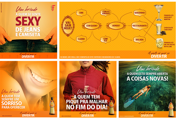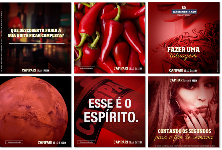 Em parceria com a Mob36, produzimos todo o design dos posts para as redes sociais do Gruppo Campari entre junho de 2013 e junho de 2014, com o direcionamento estratégico da agência FCBBrasil. Frases, receitas de drinks, campanhas, rótulos, imagens históricas e os famosos calendários de Campari tiveram grande repercussão nas redes sociais, das marcas: Aperol, Campari, Cointreau, Dreher, Frangélico, Sagatiba, Skyy Vodka.