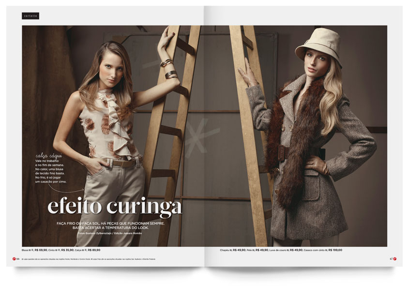 Criação e todo o projeto editorial e gráfico da Revista da Renner. O conteúdo editorial feito por nós e a curadoria de moda feita pela produtora Jussara Romão agregaram valor às peças no ponto de venda.